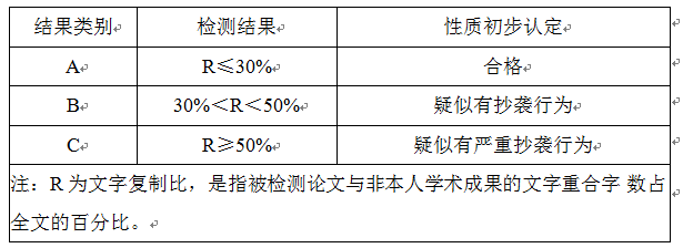 公司将利用论文引用检测系统对2022届毕业论文进行全部检测。检测结果分为三类: