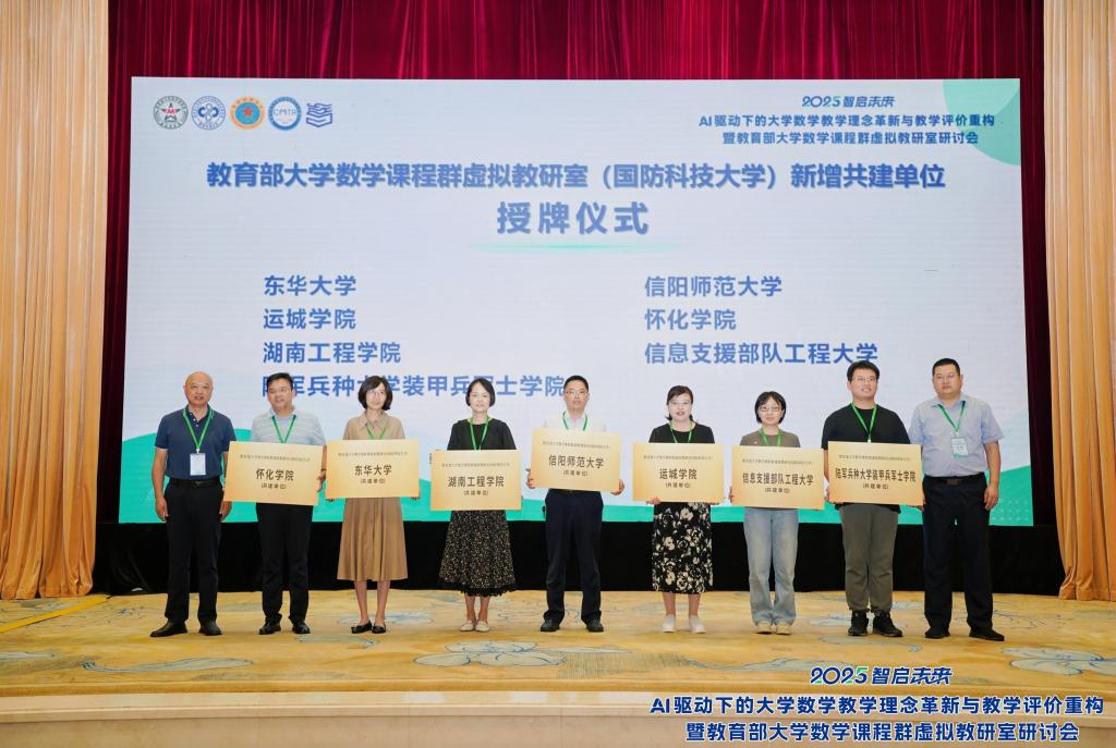 经前期申请,公司公共数学教研室正式成为教育部大学数学课程群虚拟教研室(牵头单位:国防科技大学)共建单位之一。授牌仪式于8月30日在西安交通大学与国防科技大学联合主办的“2025教育部大学数学课程群虚拟教研室工作研讨会”上举行。