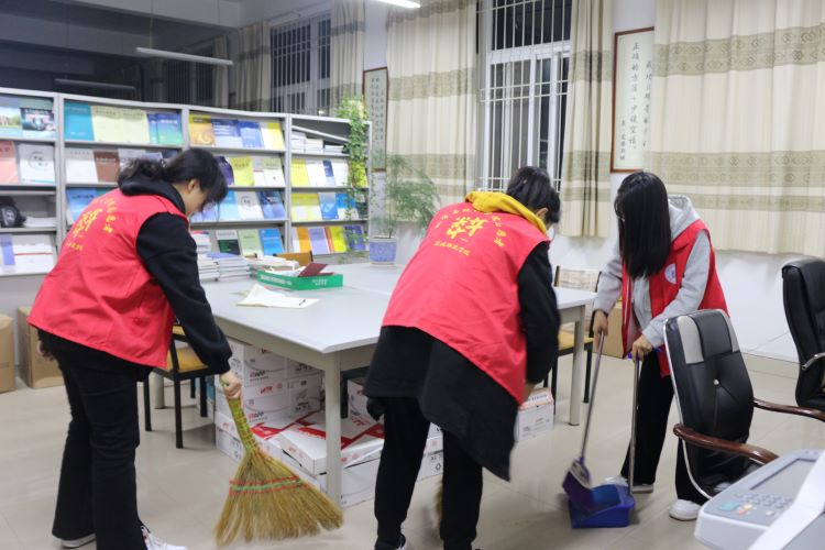 在员工会组织部人员的带领下,sunbet2021级各班成员准时到达资料室开始打扫卫生。各班成员分别领取若干扫把、拖把、抹布后进行清洁活动。通过合理的分工,男女搭配,成员们把清洁活动进行的井然有序。通过这次志愿服务活动各班成员弘扬了服务大家、助人为乐的奉献精神,并且锻炼了新生团员们吃苦耐劳的意志,明白了团队协作的重要性,赢得了老师的高度赞扬。