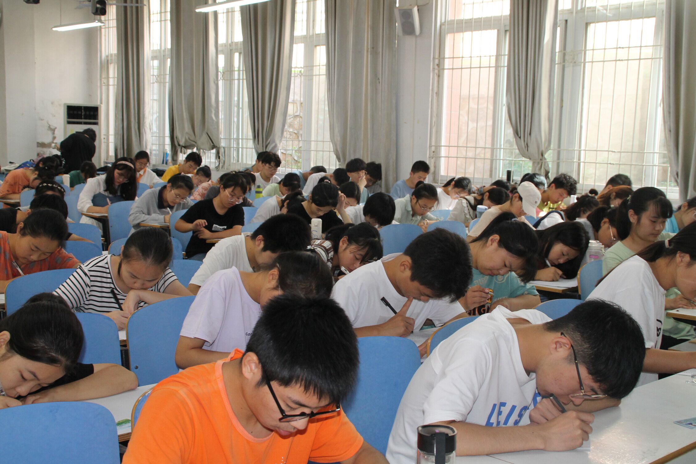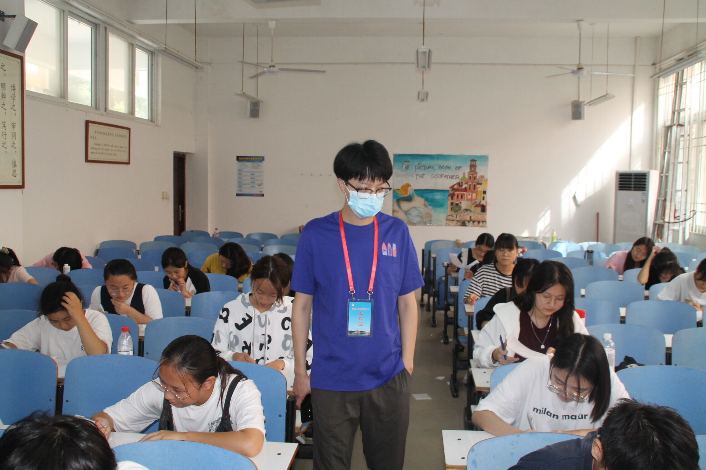 复试前,同学们按照规定时间有序进入考场,并自觉上交手机,静待监考老师发卷。开始考试时,监考人员准时发放试卷,组织有序,当每一位同学拿到试卷时,都不约而同地检查试卷是否完整,然后开始认真答题。考场上,每位同学都不停地挥动着手中的笔,监考人员严格把关,考试有序进行。完成复试后,同学们陆续上交试卷,并安静地离开考场。