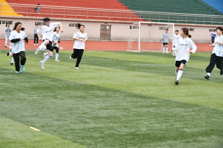 足球赛采用7人制比赛规则。赛前,队员们进行了充分的热身,学长们在一旁给予了赛前指导。随着裁判哨声响起,双方队员迅速进入比赛状态,竞争激烈。队员们积极配合,严防死守,以最好的状态对战这场比赛。赢得了观众阵阵掌声。比赛中也有意外跌倒的发生,可是每个人并没有因此影响了比赛情绪,队员之间拍拍肩膀相互安慰一下后再来。随着赛程过半,队员们稍显疲惫,但是在这种情况下,她们依然不抛弃不放弃,拼尽全力进攻、防守。在此次比赛,她们秉持着“友谊第一,比赛第二”的原则,获得了大家的认可与赞赏。