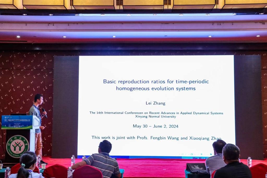 华中科技大学的张磊,做了题目为《齐次演化系统的基本再生数》的报告。