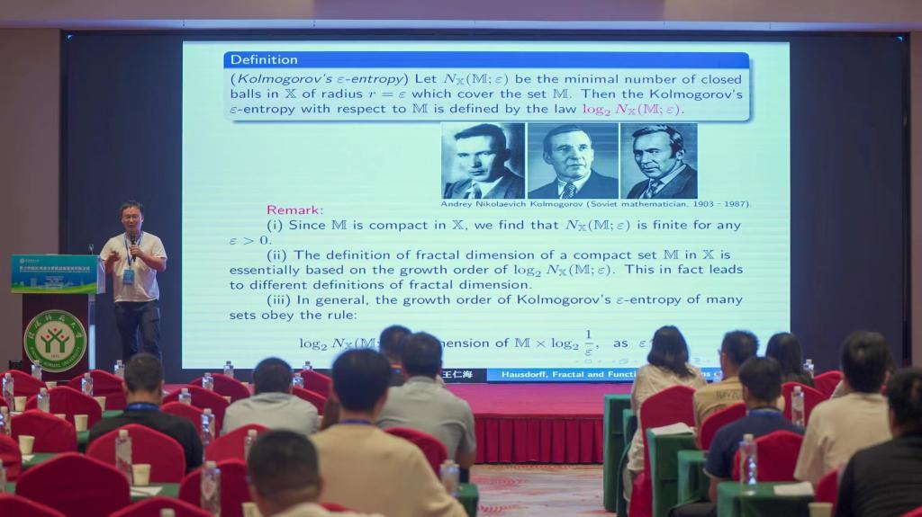 贵州师范大学的王仁海,做了题目为《Hausdorff, Fractal and Functional Dimensions of Random Attractors for Nonautonomous Random Dynamical Systems》的报告。