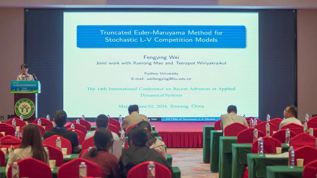 福州大学的魏凤英,做了题目为《Truncated Euler-Maruyama Method for Stochastic L-V Competition Models》的报告。