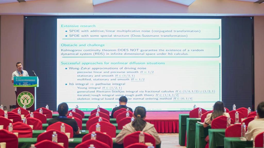 华南理工大学的曾才斌,做了题目为《Random Attractors and Invariant Manifolds for SPDEs with fBm》的报告。