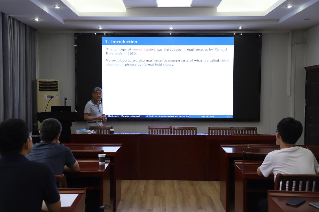 7月13至7月16日,美国罗格斯大学肯顿分校终身教授,著名华人数学家李海生老师莅临公司学术交流。李海生老师7月14日在315学术报告厅作了题为“A family of Lie superalgebras and certain Z-graded conformal vertex superalgebras”的报告。报告会由sunbet经理蔡礼明教授主持,部分老师及研究生聆听了此次报告。