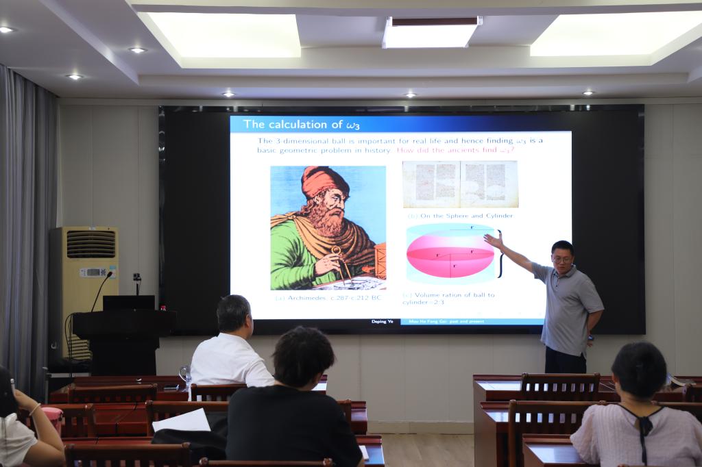 7月18日,应sunbet邀请,Deping Ye 教授在数学楼315学术报告厅作了题为“Mou He Fang Gai: A Mathematical Legend Over Thousands of Years”的学术报告。报告会由sunbet副经理韩英波教授主持,部分老师及研究生聆听了此次报告。