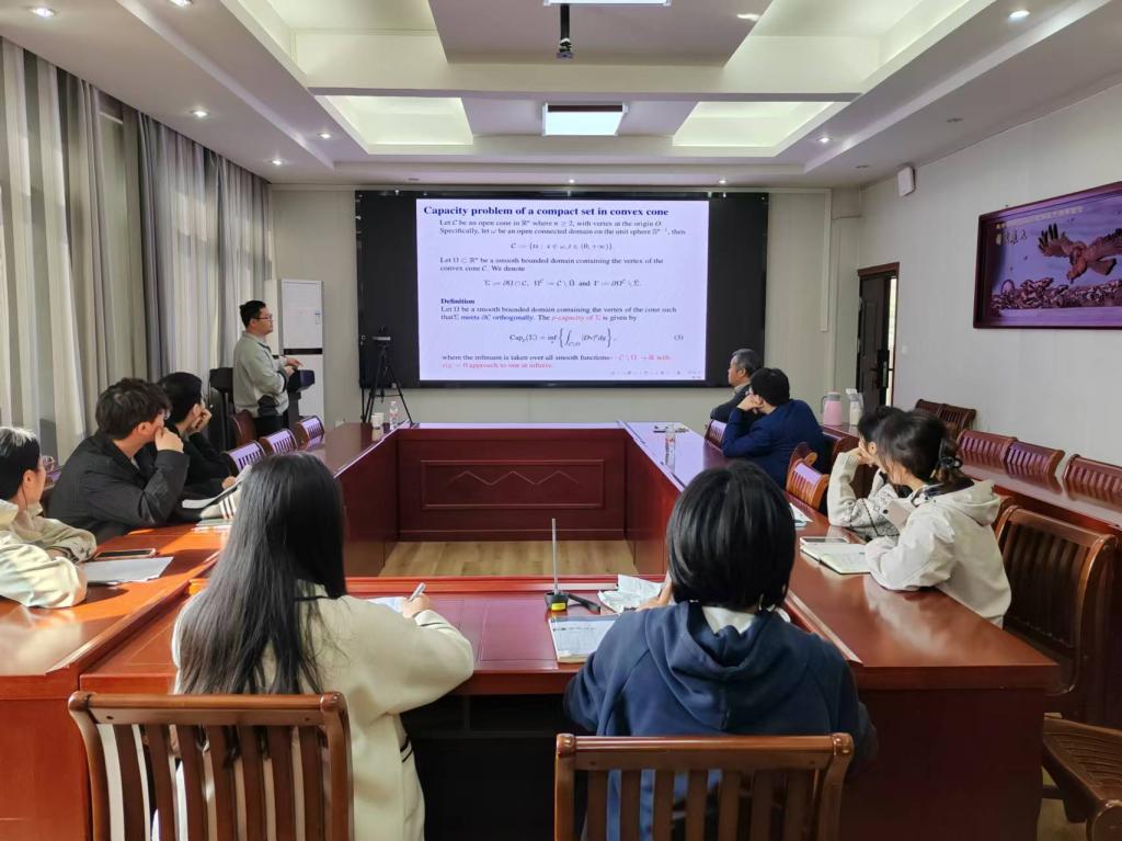 10月25日上午,应sunbet邀请,广西师范大学尹佳斌副教授作了题为《Sharp upper bounds of $p$-capacity in convex cone and asymptotically flat half-space》的学术报告。报告会由副经理韩英波教授主持,部分教师及研究生聆听了此次报告。