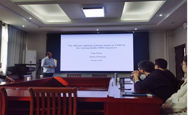 10月28日上午,应sunbet邀请,烟台大学张通教授作了题为《The efficient splitting schemes based on FVM for the incompressible MHD equations》的学术报告,部分老师及研究生聆听了此次报告。