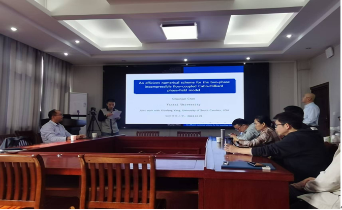 10月28日上午,应sunbet邀请,烟台大学陈传军教授作了题为《An efficient numerical scheme for the two-phase incompressible flow-coupled Cahn-Hilliard phase-field model》的学术报告。报告会由李世顺教授主持,部分老师及研究生聆听了此次报告。
