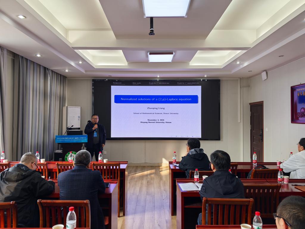 第1场报告由山西大学的梁占平教授作了题目为《Normalized solutions of a (2,p)-Laplace equation》的学术报告。