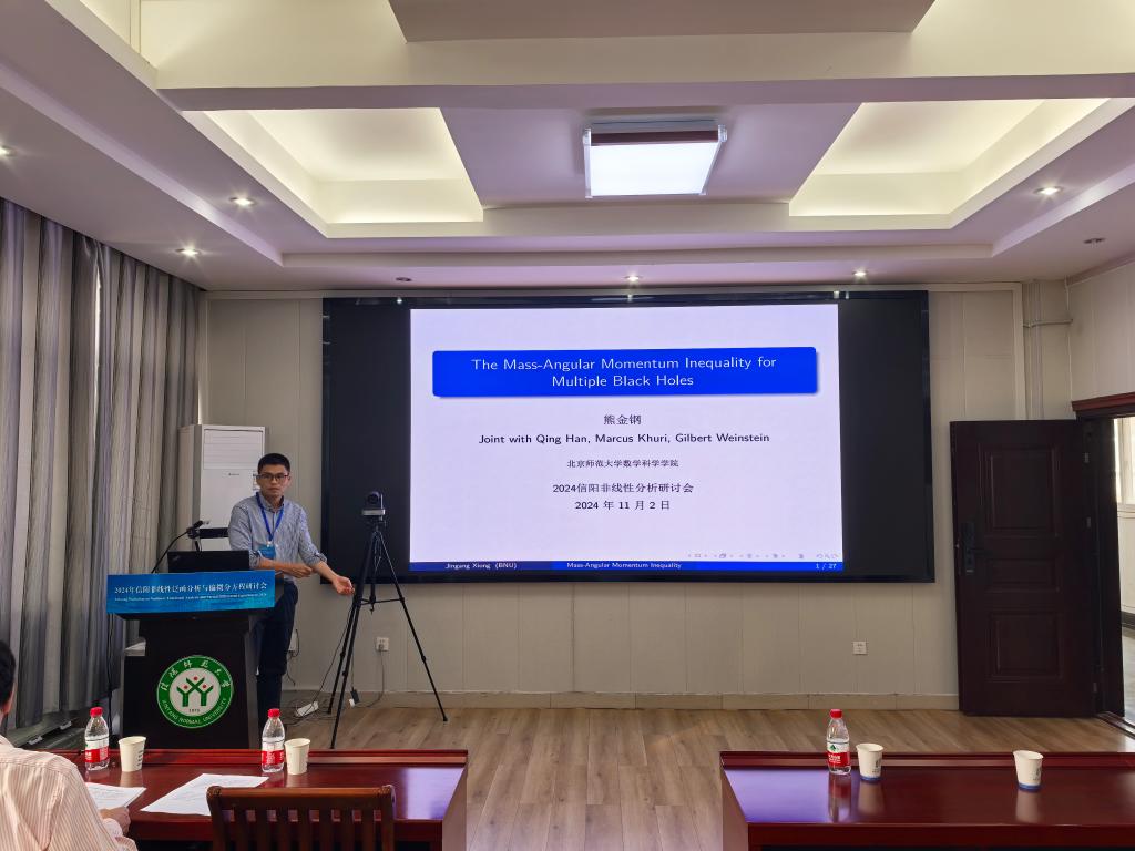 第1场报告由北京师范大学的熊金钢教授作了题目为《The Mass-Angular Momentum Inequality for Multiple Black Holes》的学术报告。