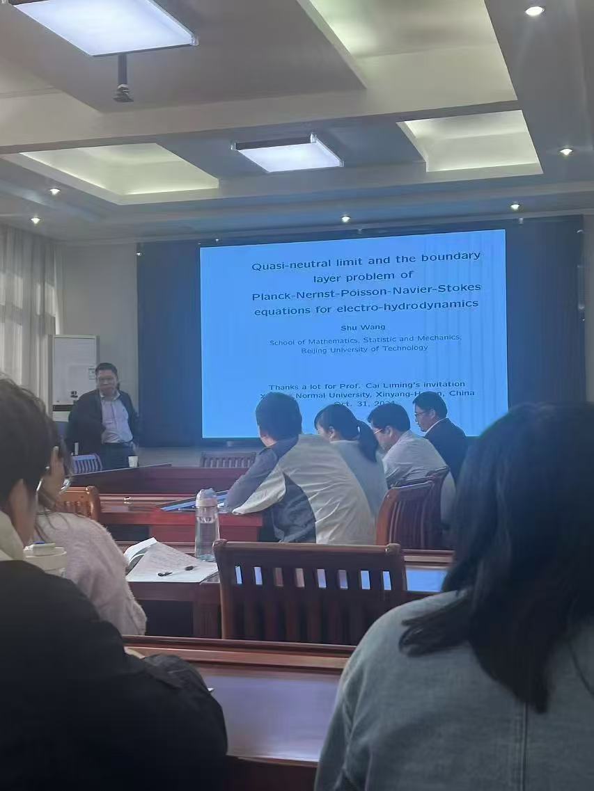 10月31日上午,应sunbet邀请,北京工业大学王术教授作了题为《电流体中Planck-Nernst-Poisson-Navier-Stokes模型的拟中性极限问题》的学术报告。报告由经理蔡礼明教授主持,部分老师及研究生聆听了此次报告。