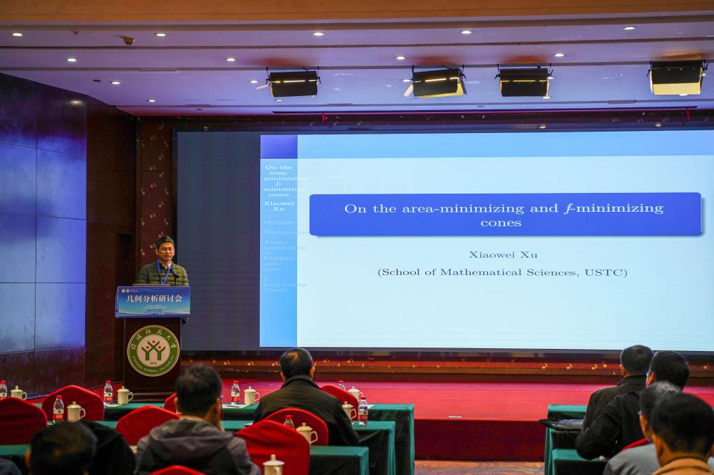 3场学术报告是由中国科学技术大学许小卫教授作了题目为“On the area-minimizing and f -minimizing cones的学术报告,此场学术报告由浙江师范大学的任益斌教授主持。