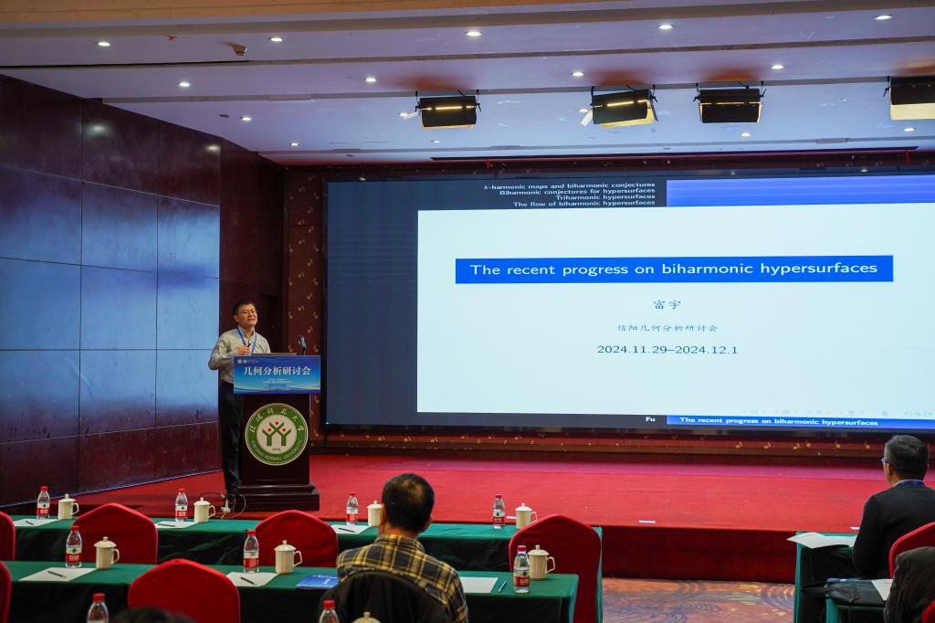 11月30日下午共有4场学术报告,第1场学术报告是由东北财经大学的富宇教授作了题目为“Recent progress on biharmonic hypersurfaces”的学术报告,此场学术报告由北京大学的莫小欢教授主持。