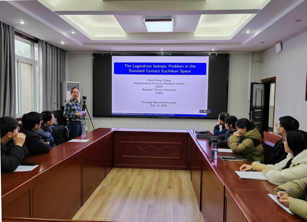 12月4日上午,应sunbet邀请,台湾大学/重庆理工大学张树城教授作了题为《The Legendrian Isotopic Problem in the Standard Contact Euclidean Space》的学术报告。报告会由韩英波教授主持,部分教师及研究生聆听了此次报告。