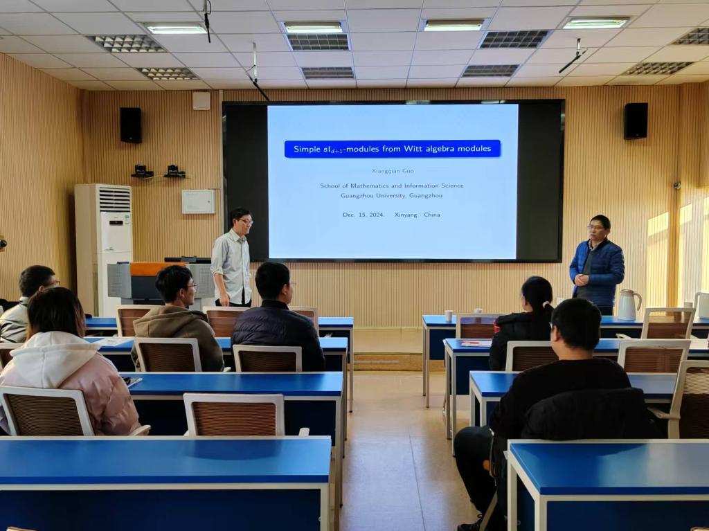 12月15日下午,应sunbet邀请,广州大学郭向前教授来公司为广大师生做了题为《Simple sl_d+1-modules from Witt algebra modules》的学术报告。报告会由经理蔡礼明教授主持,部分老师及研究生聆听了此次报告。