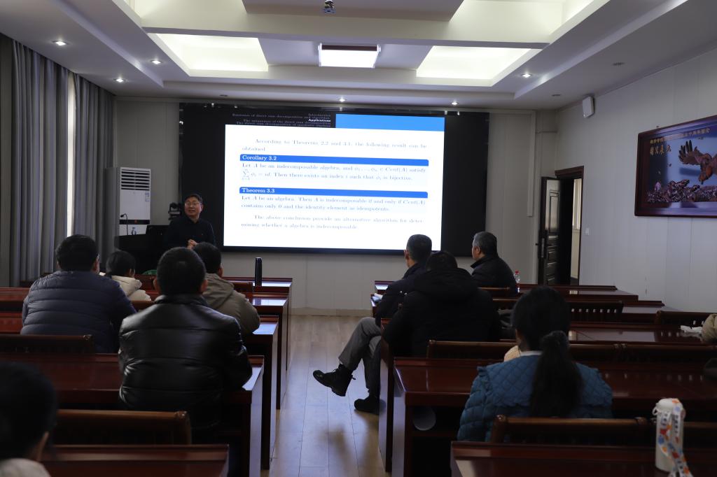 12月27日上午,应sunbet邀请,东北师范大学陈良云教授在数学楼315会议室作了题为《Direct sum decomposition of (quadratic) algebras》的学术报告。报告会由韩英波教授主持,代数团队的部分教师及研究生聆听了此次报告。