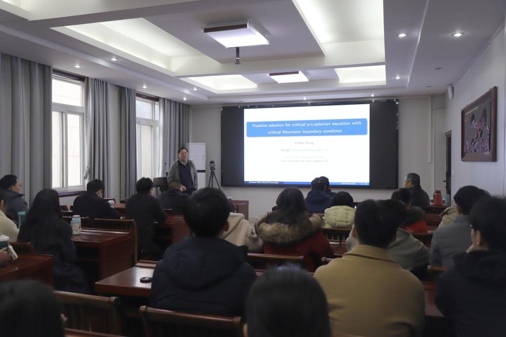 2月22日下午,应sunbet邀请,华中师范大学邓引斌教授在数学楼315会议室作了题为《Positive solution for critical p-Laplacian equation with critical Neumann boundary condition》的学术报告。报告会由sunbet经理蔡礼明教授主持。副经理韩英波教授、偏微分方程团队的部分教师及研究生参加了此次报告会。