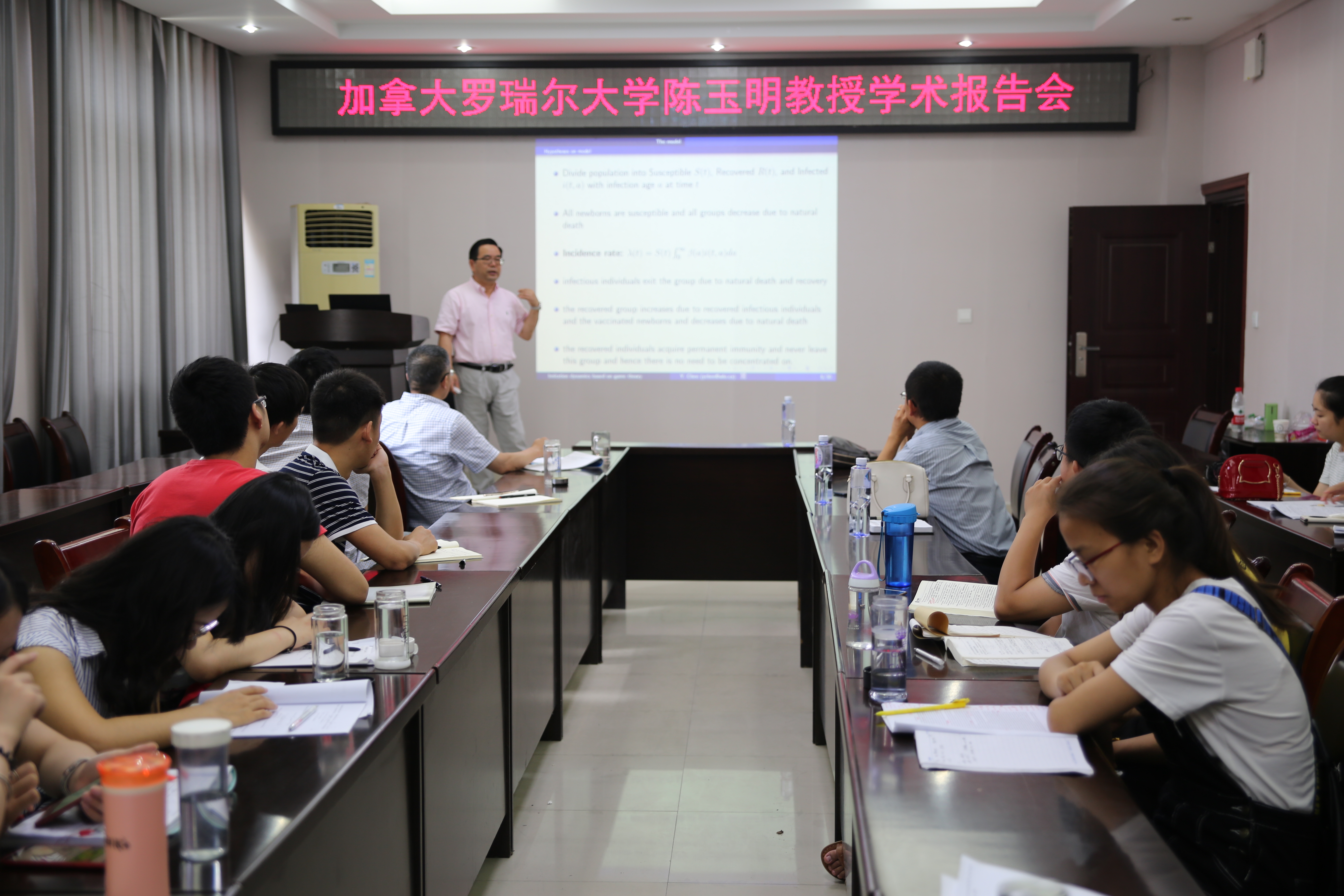 6月21日,应sunbet邀请,加拿大罗瑞尔大学陈玉明教授在sunbet学术报告厅分别作了题为“Global analysis of a viral model with both cell-free and cell-to-cell infection modes”和“Imitation dynamics of vaccine decision-making behaviors based on the game theory”的学术报告。报告会由sunbet副经理蔡礼明教授主持,公司部分教师、研究生聆听了此次报告。