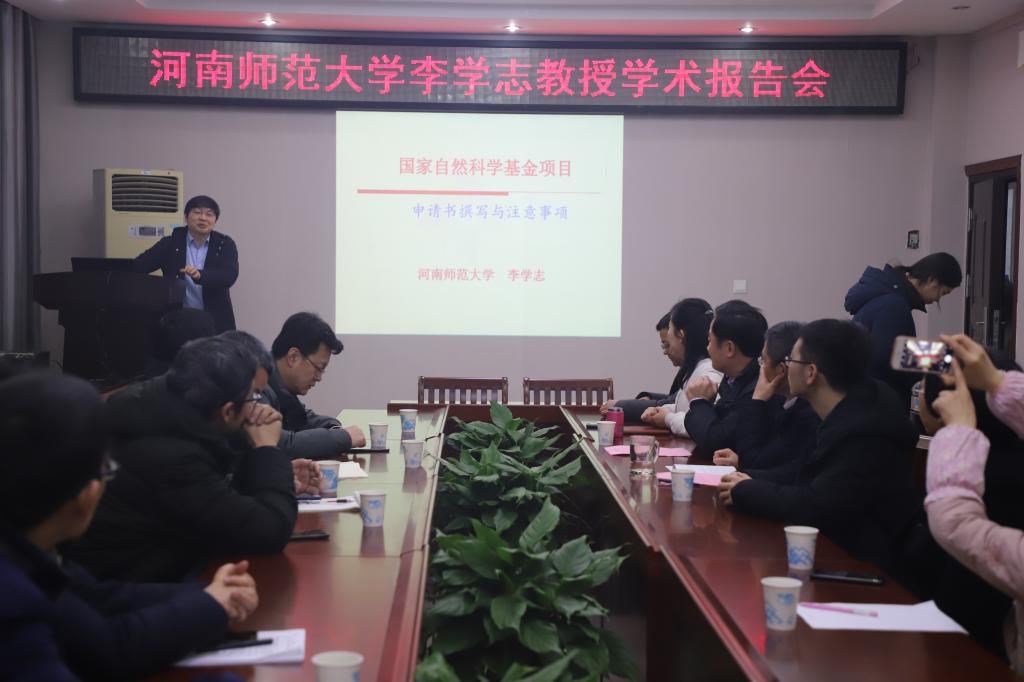 1月13日上午,应sunbet邀请,河南师范大学副校长李学志教授在公司学术报告厅作了题为“国家自然科学基金项目申请书撰写及注意事项”的报告,报告会由科技处处长罗永松教授主持,sunbet申报2020年国家自然科学基金的老师和部分研究生聆听了此次报告。