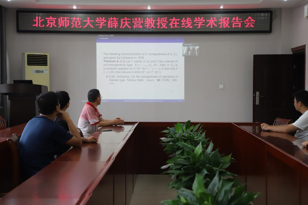 6月14日,应sunbet邀请,北京师范大学薛庆营教授通过腾讯会议平台作了一场题为《多线性算子的交换子的紧性问题》的网络视频学术报告。报告会由sunbet副经理蔡礼明教授主持,公司部分老师,研究生和该领域相关博士聆听了此次报告。