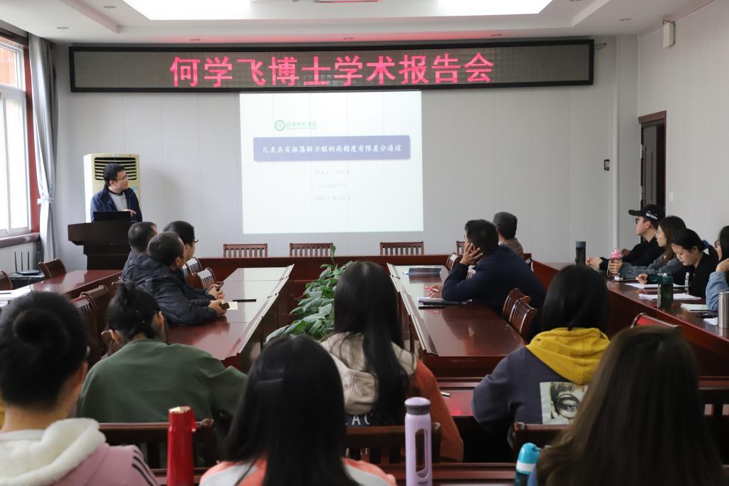 10月6日下午,新入职教师何学飞博士和王常健博士在sunbet学术报告厅分别做了题为《几类具有振荡解方程的高精度有限差分逼近》和《关于抛物型Allen-Cahn方程解奇异极限的研究》的学术报告。报告会由公司副经理蔡礼明教授主持,公司部分老师和研究生聆听了此次报告。