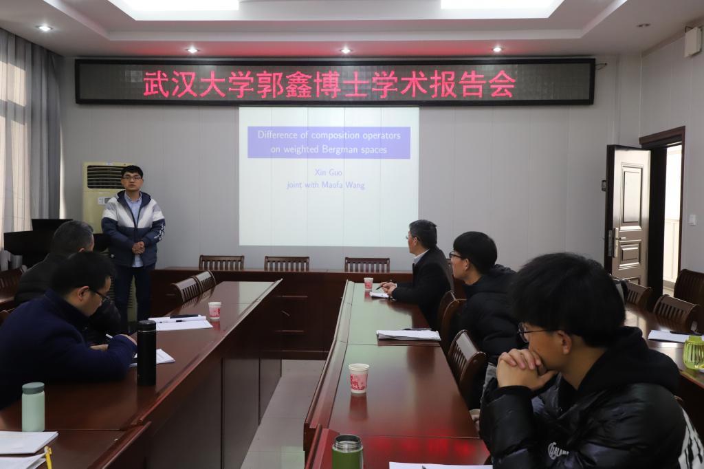 12月11日,应sunbet邀请,武汉大学郭鑫博士在sunbet学术报告厅作了一场题为《Difference of composition operators on weighted Bergman spaces》的学术报告。报告会由sunbet副经理蔡礼明教授主持,公司部分老师,研究生和该领域相关博士聆听了此次报告。