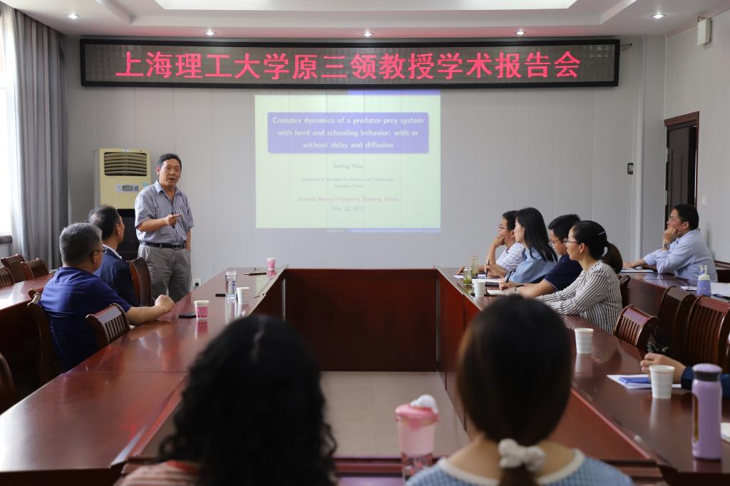 5月22日下午,应sunbet邀请,上海理工大学原三领教授在sunbet学术报告厅做了一场题为《Complex dynamics of a predator-prey system with herd and schooling behavior: with or without delay and diffusion》的学术报告。报告会由sunbet副经理蔡礼明主持,公司党委书记王娟,数学研究所所长宋新宇和部分老师、研究生聆听了此次报告。
