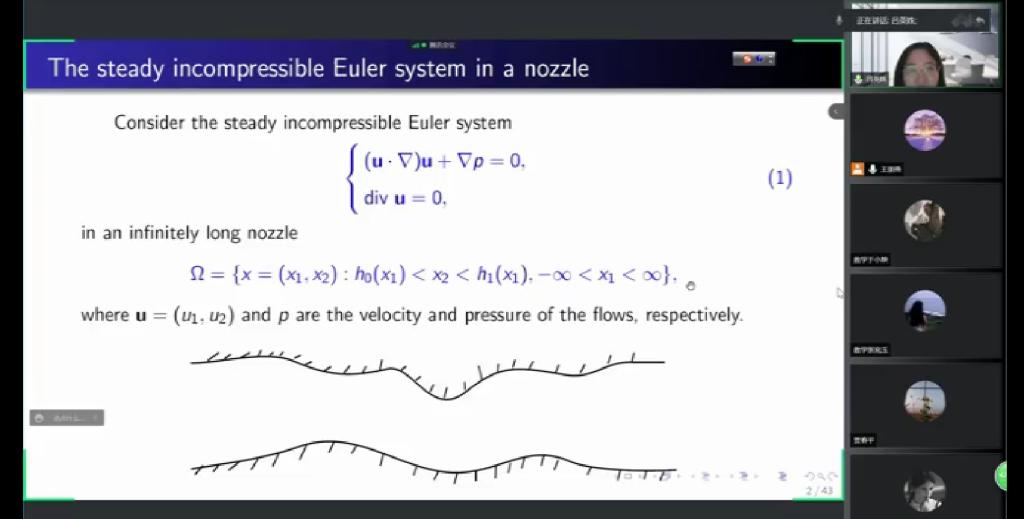 5月28日上午,应sunbet邀请,复旦大学吕英姝博士后通过腾讯会议平台做了一场题为《Uniqueness and existence of steady solutions for the Euler system in an infinitely long nozzle》的学术报告。报告会由sunbet王朋燕博士主持,公司部分老师和研究生聆听了此次报告。