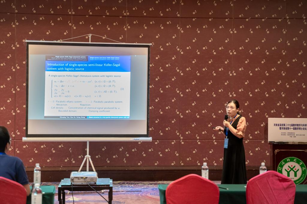 郑州轻工业大学田苗青,做了题目为《Global attractors in a two-species chemotaxis system with two chemicals and logistic sources》的报告。