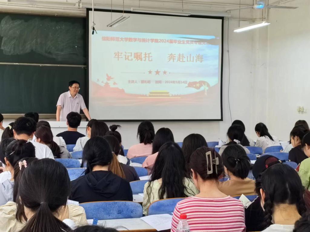 蔡礼明以《牢记嘱托,奔赴山海》为题,讲授了新时代青年党员该有的担当和情怀。他特别强调发挥党员模范先锋作用的重要性,并从三个方面对毕业生党员提出了殷切期望:一是要时刻牢记入党初心,以高度的责任感和使命感,在日常生活和工作中发挥模范带头作用。二是要时刻牢记终身学习的理念,深入学习党的理论方针政策,提高自身的政治素养,努力钻研专业技能,增强解决实际问题的能力。三是要时刻牢记做人做事的准则,堂堂正正做人,踏踏实实做事,立足本职,勤奋努力,追求卓越,用实干实绩为党增光、为校添彩。