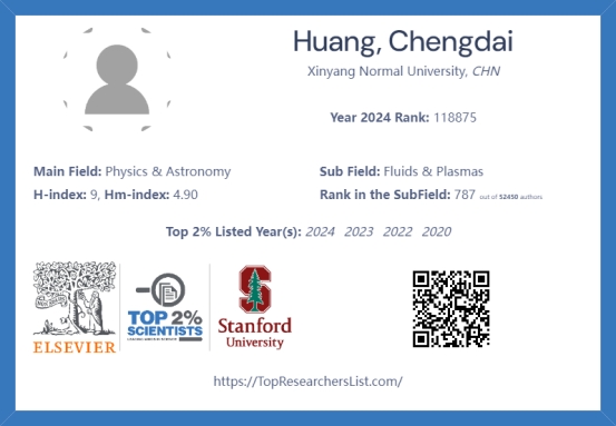 喜报!公司黄承代博士入选2024年度全球2%顶尖科学家排行榜