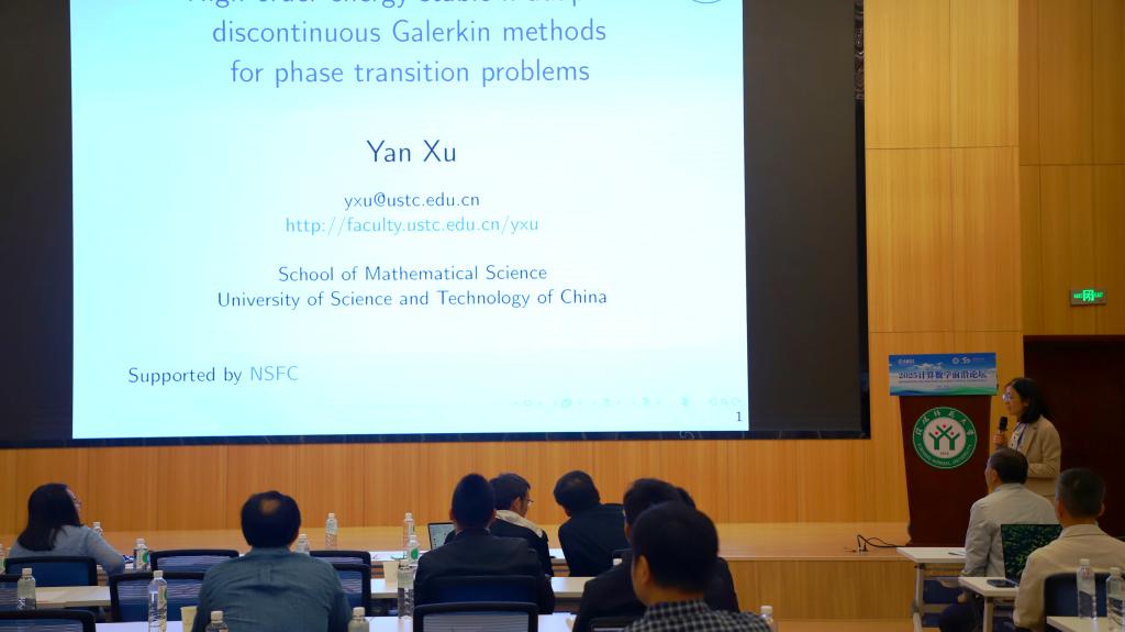 5报告由中国科学技术大学徐岩教授作了题目为《High order energy stable h-adaptive discontinuous Galerkin method for phase transition problemm》的学术报告。