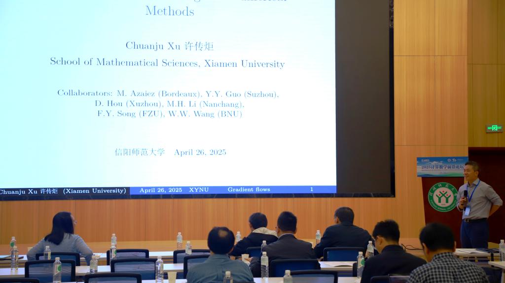 4报告由厦门大学许传矩教授作了题目为《Gradient Flows: Modelling and Numerical Methods》的学术报告。