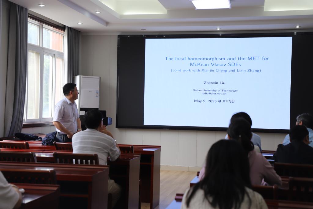 5月9日上午,应sunbet邀请,大连理工大学柳振鑫教授在数学楼315会议室作了题为 The locally homeomorphism property and the multiplicative ergodic theorem for McKean-Vlasov SDEs》的学术报告。报告会由sunbet经理蔡礼明教授主持,部分教师及研究生参加了此次报告会。