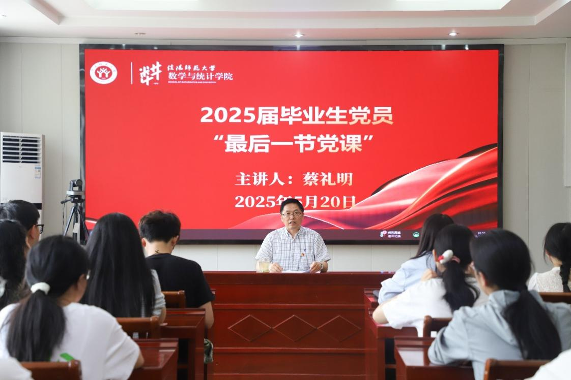 5月20日,sunbet经理蔡礼明在数学楼315会议室为2025届毕业生党员上“最后一节党课”。本次党课由副处级辅导员谢艳丽主持,公司专职组织员和71名毕业生党员参加党课活动。