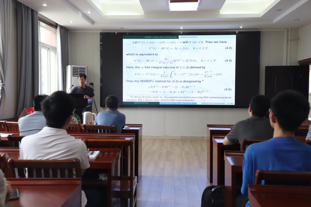 6月9日上午,应sunbet邀请,兰州大学陈明华教授作了题为《Weighted and shifted seven-step BDF for parabolic equations with nonsmooth data》的学术报告。报告会由李世顺教授主持,部分老师及研究生聆听了此次报告。