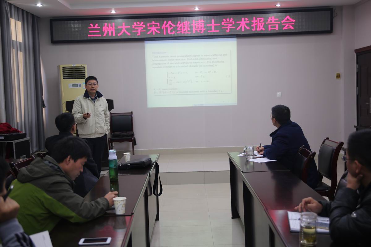 宋伦继博士首先介绍了无界区域均匀介质中单个障碍物对波的高频散射问题所具有的重要的数学、物理及工程意义。宋博士在报告分析了二维时谐Helmholtz方程中散射计算问题, 对圆周人工边界DtN(Dirichlet to Neumann)精确条件, 构建了一种易实现的DtN 局部迭代逼近方式, 并基于Hankel特殊函数的性质和渐近估计, 分析了迭代问题的收敛性条件;其次, 采用多区域高精度内罚间断 Galerkin 方法逼近迭代问题, 在剖分区域采用谱方法, 并给出了相应的谱元先验误差估计; 最后结合数值试验对理论结果进行验证。 另外, 宋博士给出了高阶内罚间断Galerkin方法在不可压缩流体, 如高雷诺数方腔流、圆柱绕流中的数值计算实例和应用。