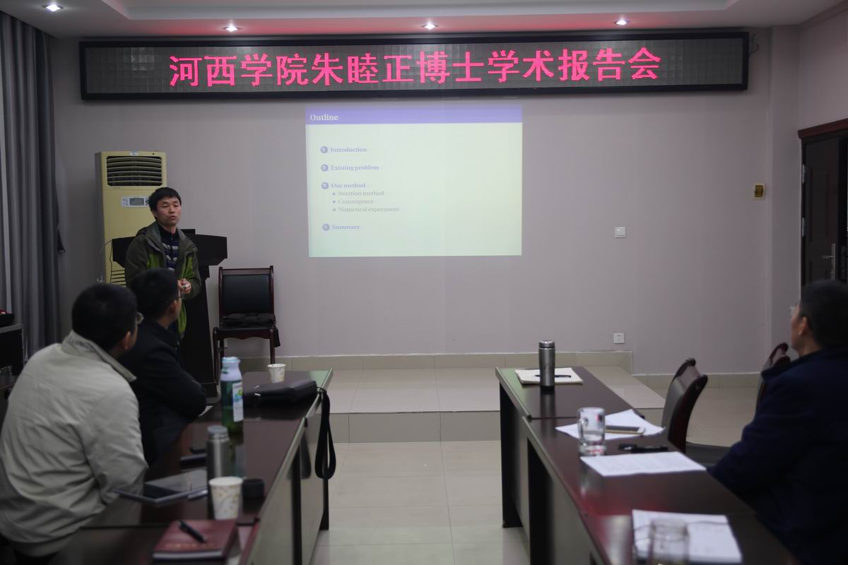 朱睦正博士首先介绍了鞍点问题的背景及研究现状, 重点分析了鞍点矩阵中的非Hermitian 正定的情形。 通过对 Hermitian和 non-Hermitian (HSS)分裂, 提出了序列两段迭代法, 并对文 [D.-P. Li, J.-Y. Zhao and G.-F. Zhang, Appl. Math. Comput., 2011] 中鞍点矩阵的对称正定情形进行了推广。 其次, 朱博士从理论上分析了序列两段迭代方法的收敛性, 给出了迭代参数的取值范围, 并通过 Navier-Stokes问题离散的数值实验验证了新方法可行性和有效性。 最后, 朱博士对所提出的新方法做了总结,并对未来的进一步地研究做了展望。