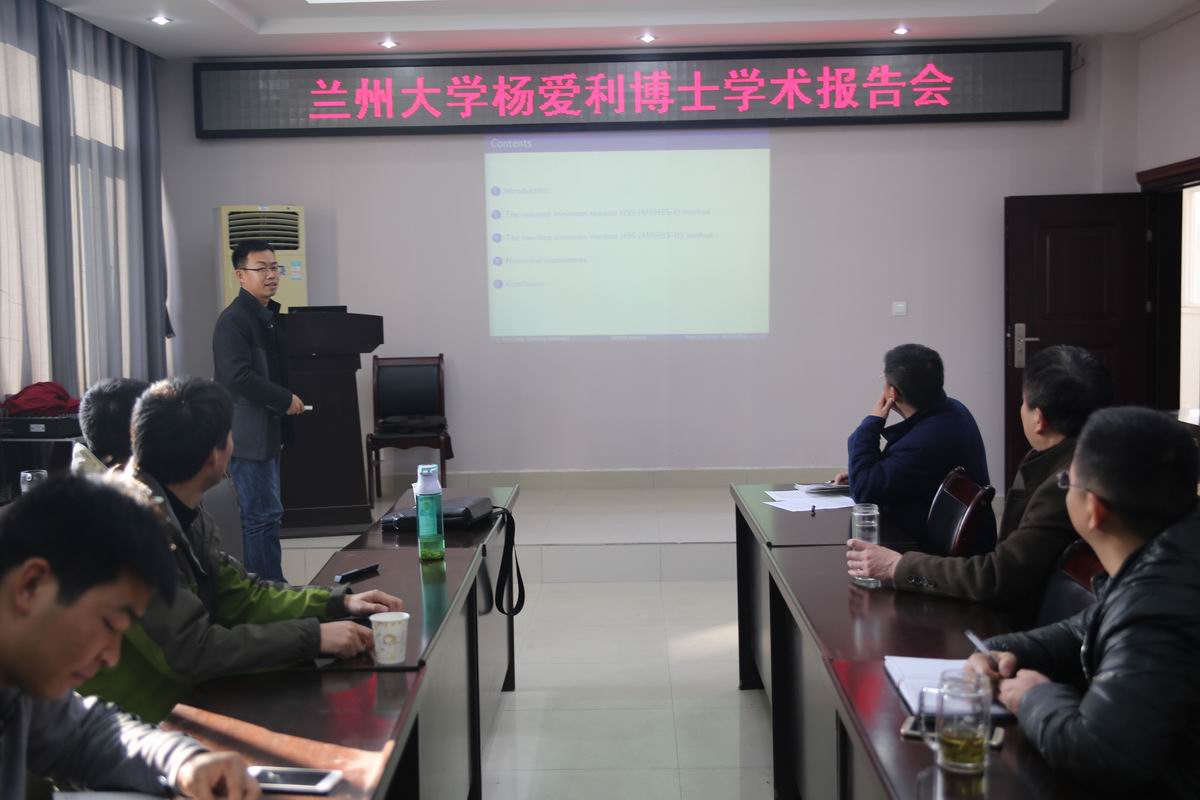 杨爱利博士首先介绍了大型稀疏线性方程组的来源及研究意义, 并进一步介绍了当前对该类问题比较有效和热门的迭代解法, 特别强调了求解非Hermitian 正定线性系统的Hermitian and skew-Hermitian splitting (HSS) 迭代方法。 其次, 为了进一步加速HSS方法的计算效率, 杨博士对单步和两步的HSS迭代格式分别引入步长参数, 通过极小化残差的某种范数给出步长参数的取值, 最终提出了两类求解非Hermitian正定系统的变参数的HSS方法。 通过对残差进行细致地分析, 从理论上证明了这两类变参数的HSS方法都是无条件收敛的. 最后通过数值实验验证了新方法是非常稳健和有效的。