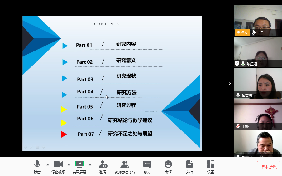 受新冠肺炎疫情的影响,公司首次采用网络视频会议开展学位论文预答辩。预答辩分为四组,共30位答辩人,20位答辩专家,100余人在线参与和观摩了此次学位论文预答辩。王娟教授,郑丽丽教授,彭玉成教授和宋新宇教授担任预答辩主席。