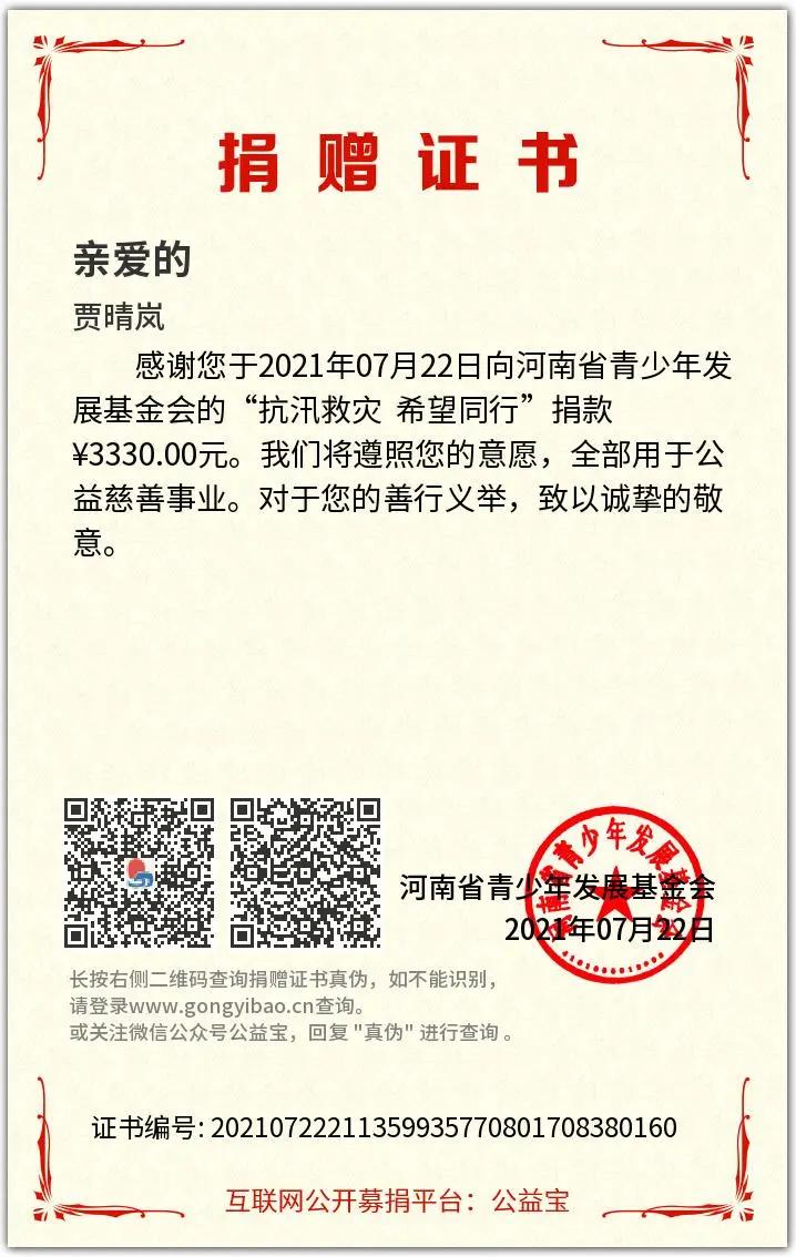 贾晴岚,sunbet2018级员工,中共预备党员,原公司员工会执行主席。看到受灾地区物资告急和募捐倡议书,贾晴岚没有犹豫,第一时间将自己的奖学金、比赛奖金和积攒的零花钱,共计3330元,全数捐给河南省青少年发展基金会。这笔钱原本是用来交学费的,对此,她说:“公司给我们奖学金是鼓励我们好好学习,回馈社会,成为对国家有用的人,这个时候,灾区人民比我更需要它。”