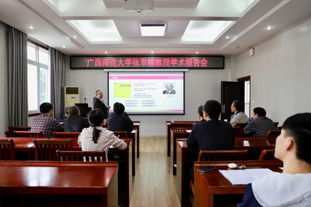 4月28日上午,应sunbet邀请,广西师范大学张军舰教授在公司报告厅315作了题为“统计之理论与应用研究”的报告。报告会由sunbet经理蔡礼明教授主持,部分教师和研究生参加了此次报告会。