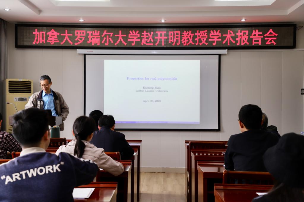 4月28日上午,应sunbet邀请,加拿大罗瑞尔大学赵开明教授在公司报告厅315作了题为“Properties of real polynomials”的报告。报告会由sunbet经理蔡礼明教授主持,部分教师和研究生参加了此次报告会。