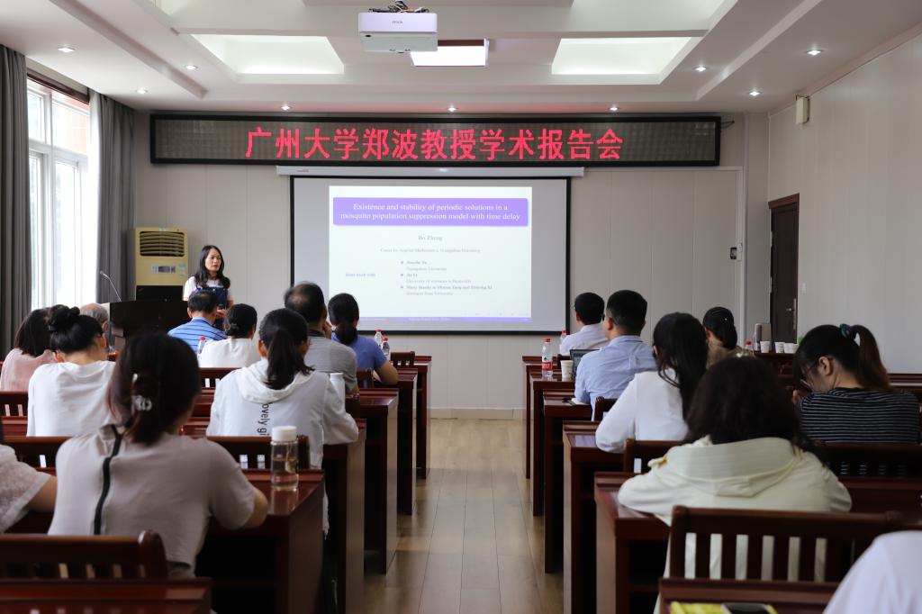 在6月30日上午,广州大学的郑波教授应sunbet的邀请,在公司报告厅作了题为“Existence and stability of periodic solutions for a mosquito population suppression model with time delay”的报告。该报告由sunbet经理蔡礼明教授主持,生物数学团队的教师以及研究生们参与了报告会。