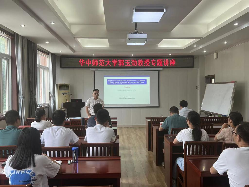应sunbet邀请,华中师范大学郭玉劲教授于8月18日下午在数学楼315报告厅进行了系列专题讲座,主题为“Topics on variational problems of quantum many-body system”。 讲座由经理蔡礼明主持,公司部分专业教师、研究生和高年级本科生参加了此次讲座。