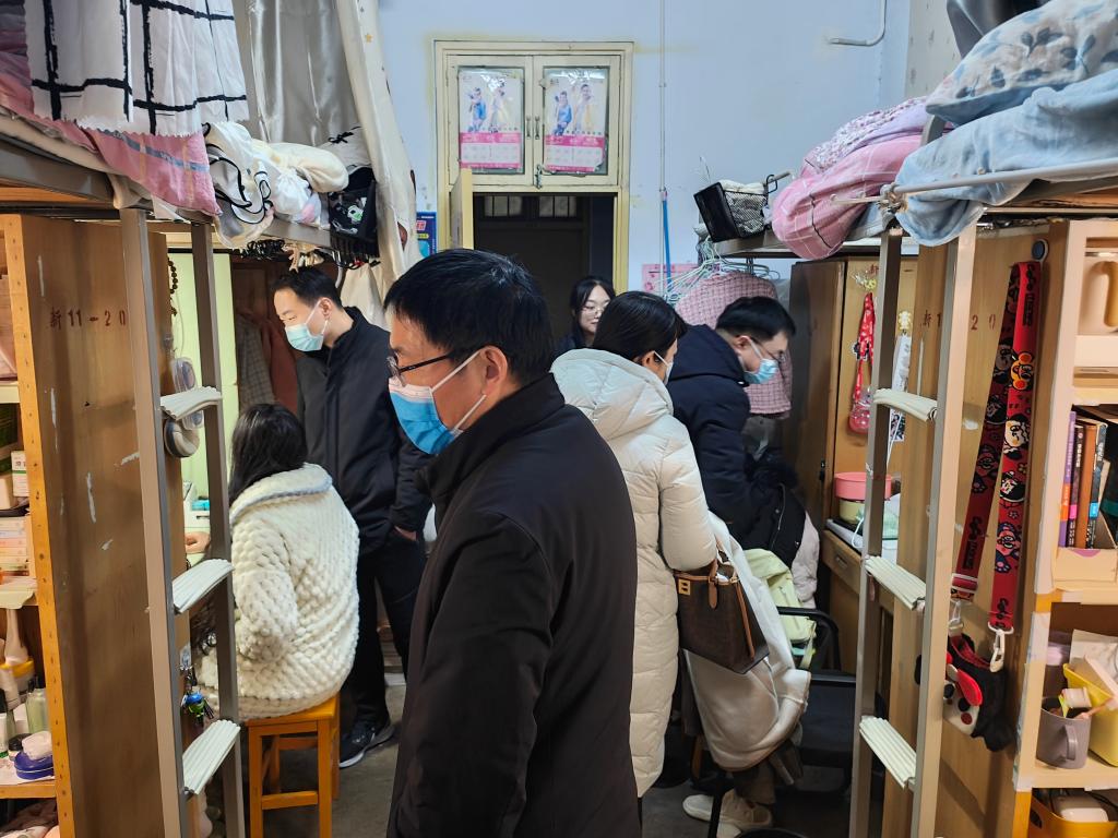 在巡查走访过程中,公司领导深入各个楼栋的员工宿舍,重点关注寝室安全隐患问题。他们还积极了解员工思想动态,关切员工身体和心理健康。对学习、生活、考研、就业等方面进行指导。随后,老师们与员工进行了深入交流,了解他们的学习、生活情况,鼓励他们坚定考研信心,缓解备考压力。最后,他们还针对员工反映的问题和建议,及时给予回应和解答。