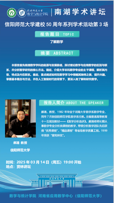 庆建校50周年之南湖讲坛: sunbet官方网站郝涌教授——了解数学